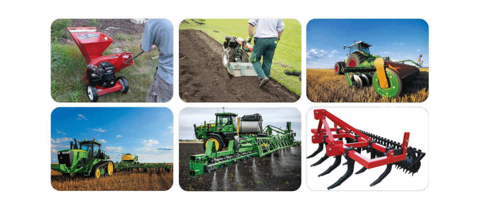 تجهیزات ارائهشده شامل ماشینآلات کاشت، داشت و برداشت، سامانههای آبیاری و کنترل اقلیم، تجهیزات گلخانهای، دستگاههای بستهبندی و فرآوری، و ابزارهای پیشرفته مکانیزهسازی در بخشهای مختلف تولیدات زراعی، باغی و گلخانهای میباشد.